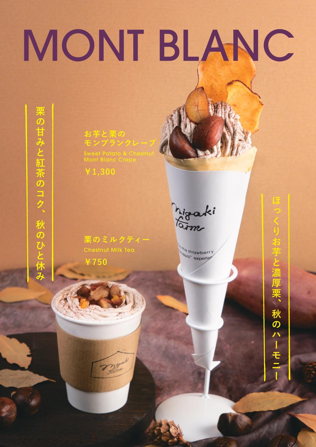 10/1(水)「MIGAKI FARM SHOP&CAFE 閖上店」秋の味覚を堪能する期間限定スイーツが登場!「お芋と栗のモンブランクレープ」「栗のミルクティー」新発売